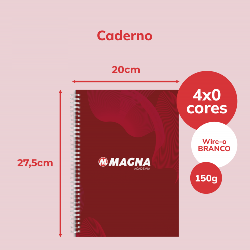 Cobertura: Laminação Fosca - Com Pauta - Miolo Padrão - Wire-o Branco - 96 Folhas